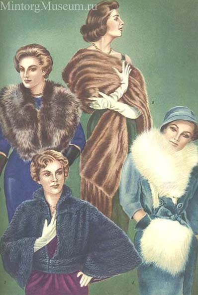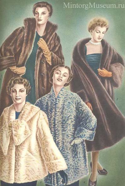 1 - пальто из норки; 2 - манто; 3 - жакет из белой мерлушки; 4 - полупальто из серого каракуля