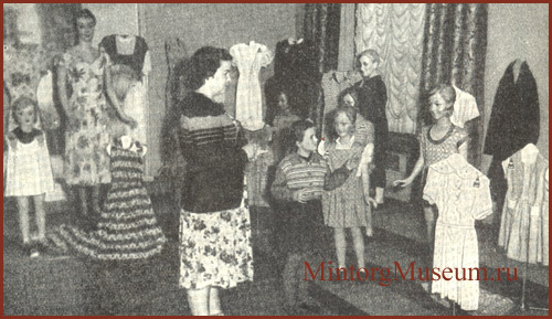 На Дома моделей возложено также было ознакомление населения с новинками моды. В этих целях при общесоюзном, ряде республиканских и областных Домах моделей производились постоянные выставки лучших образцов одежды. На этих выставках покупатели получали необходимую консультацию. Здесь же была организована продажа рисунков лучших моделей и выкроек к ним. Такие же выставки и демонстрации одежды Дома моделей устраивали в парках культуры, рабочих и колхозных клубах. Для популяризации новых моделей использовали также иллюстрированные журналы, телевизионные передачи, кино и пр. (прим.: можно вспомнить по кинофильмам «Живёт такой парень», «Девушка без адреса», «Бриллиантовая рука», «Место встречи изменить нельзя»).