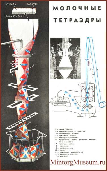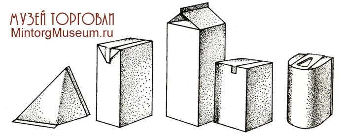 Молочная упаковка - тетраэдры. Пакеты, в форме тетраэдров (трёхсторонних пирамидок) для упаковки молочной продукции (см. Молоко).