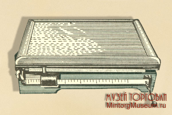 Весы настольные с вертикальной шкалой. Шкала увеличивается при помощи оптического прибора и имеет местное освещение. Вес указывается красной линией, проходящей по шкале. Площадка и указательный прибор весов находятся на одном уровне, вследствие чего они попадают одновременно в поле зрения как продавца, так и покупателя.