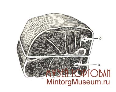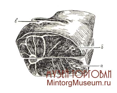 Оковалок: а – щуп; б – филейная вырезка; в – собственно оковалок (затылок)