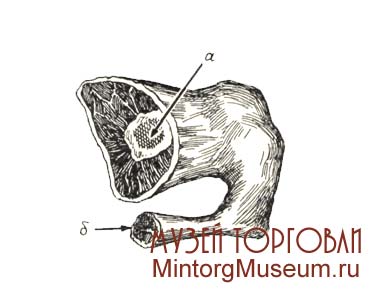 Кострец: а – наружная часть; б – внутренняя часть; в – часть тазовой (лонной) кости, выходящая наружу
