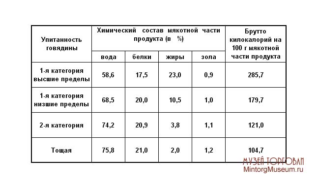 Говядина различалась в зависимости от пола, возраста, термического состояния и торгового сорта.