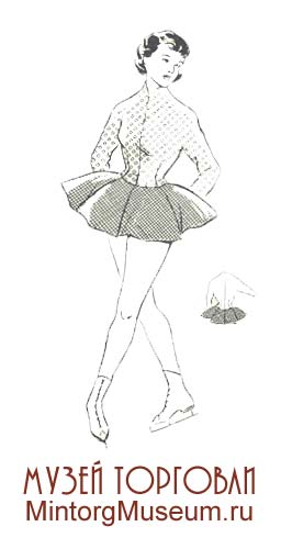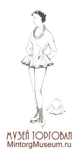 Женский спортивный костюм для игроков в хоккей с мячом состоял из рейтуз, короткой юбки произвольного фасона, свитера или лыжной куртки, футбольных гетр и лыжной трикотажной шапочки.