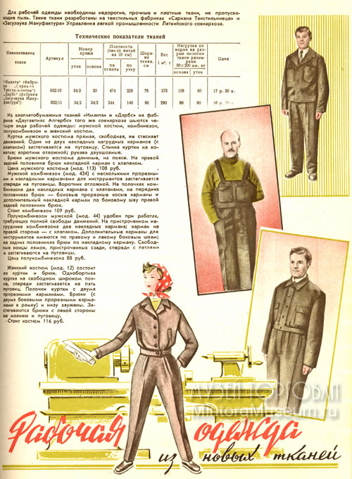 Рабочая одежда 1959 года (Фабрики "Саркана Текстильниеце" и "Засулаука Мануфактура" ЛатССР)