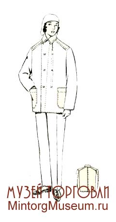 Специальный рабочий хлопчато-бумажный прорезиненный костюм состоял из двубортной куртки и брюк с двумя карманами, пошивался из прорезиненной меланжевой колумбии арт. 670 на подкладке из ситца арт. 4297. Имел общее назначение, применяется для работы в сырых местах.
