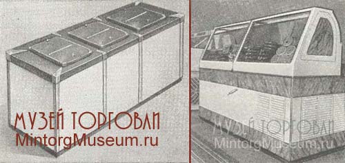 Холодильные прилавки: слева – низкотемпературный прилавок типа 4-ХПН, справа – прилавок с открытой охлаждаемой витриной типа ПВ-1