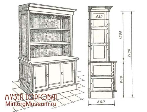 Общий вид шкафа для продовольственных товаров и разрез шкафа