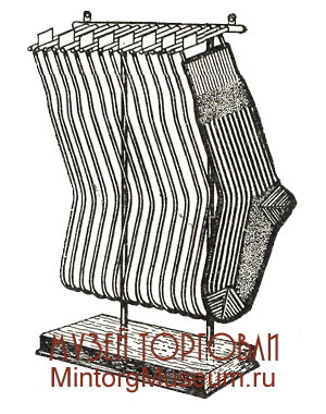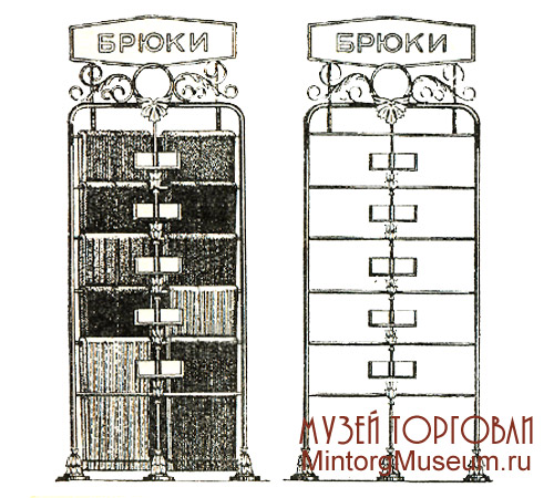 Для показа юбок и брюк применялась вращающаяся стойка с никелированными горизонтальными фигурными держателями.