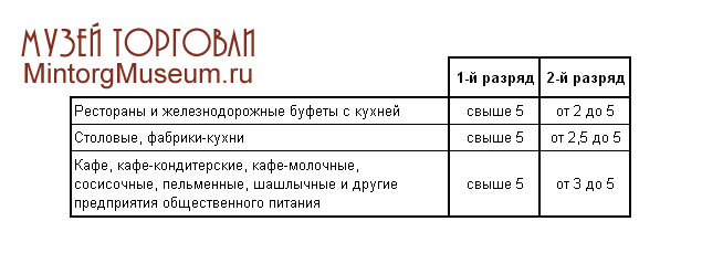 Все остальные предприятия общественного питания относились к III разряду.