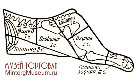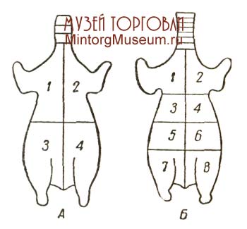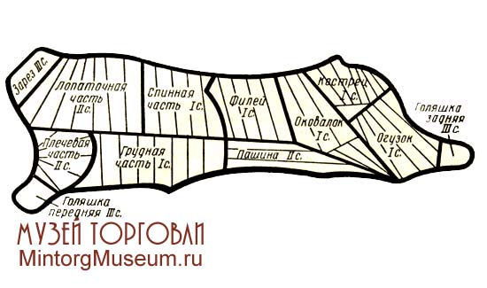 Розничная разделка мяса. В СССР было установленное правило, что при подготовке мяса всех видов — говядина, телятина, баранина, свинина и др. — разделывается (разрубается) на сортовые части (отрубы) по анатомическим границам, установленным ГОСТ и схемами розничной разделки.