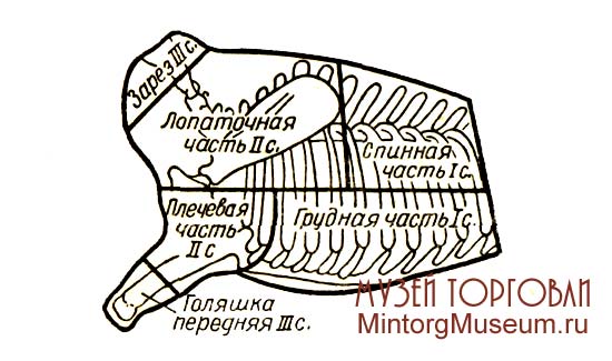 Схема разруба на сортовые отрубы передней четвертины туши говядины