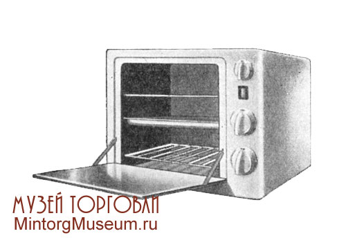 Электродуховки комплектовались выдвижными противнями и съемными проволочными полками.