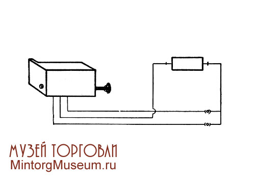 Электрическая задвижка имела один круглый засов, который перемещался на два положения: «открыто» и «закрыто» при помощи электромагнита, встроенного в корпусе прибора. Задвижка управлялась как вручную — рукояткой, расположенной на боковой стороне корпуса, так и на расстоянии — двумя кнопками звонкового типа по схеме, приведенной ниже. Размеры замка (в мм): 65 х 45 X 30.