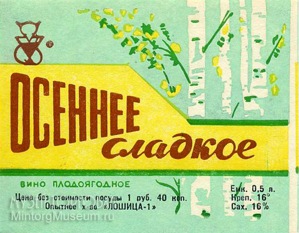 Плодово-ягодное вино "Осеннее" сладкое (Опытное хозяйство "Лощица-1" Минсельхоз БССР)