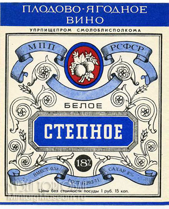 Плодово-ягодное вино "Степное" белое (Упрпищепром Смолоблисполкома)