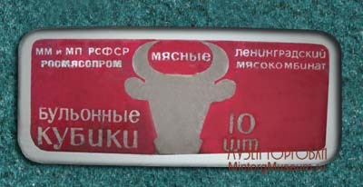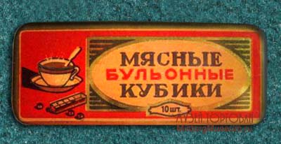 Бульонные кубики мясные продавались в маленьких металлических коробочках. Эти коробочки во всё время их существования отличались тем, что поразительно быстро ржавели и, сверхестественно трудно открывались, т.к. плотно надевающаяся крышка, никак не хотела расставаться с коробочкой, а также обе часто оказывались достаточно промаслены и скользили в руках. Приходилось поддевать крышку ножом. Именно поэтому такие коробочки сегодня не часто встречаются, а если и попадаются, то их состояние оставляет желать лучшего, ведь аккуратная хозяйка, после быстрого использования таких кубиков, тут же передавала коробочку мужу, которую он использовал для хранения мелких метизов, не заботясь о сохранении красочного слоя на крышечке.