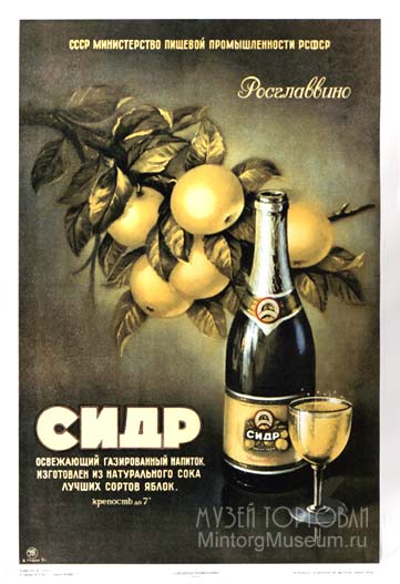Сидр, разливался в шампанские бутылки ёмкостью 0,8 л, укупоривался корковой или полиэтиленовой пробкой, которая закреплялась проволочной уздечкой, и отделывалась фольгой. На бутылки наклеивались этикетки с указанием совнархоза, завода, наименования сидра, ёмкости бутылки, крепости, содержания сахара. Компостером или штампом проставлялась дата розлива.