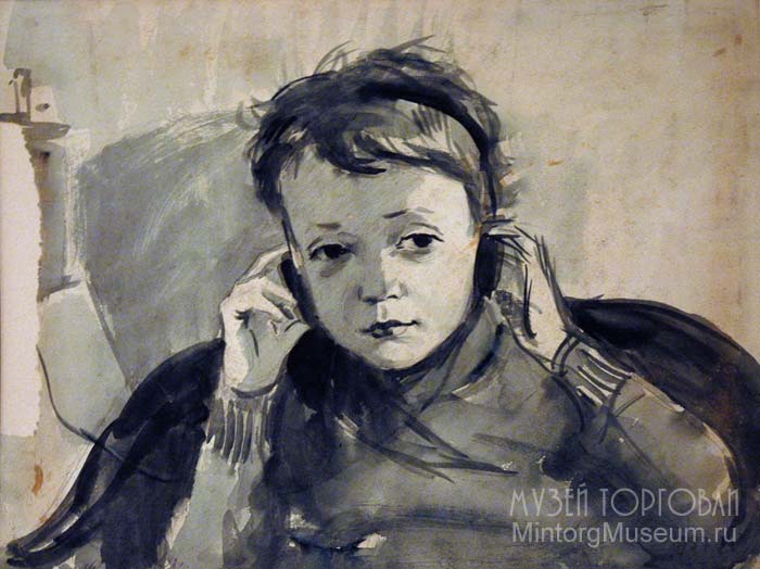 Вадим Аронов позирует для картины «Слушает радио», конец 1930-х