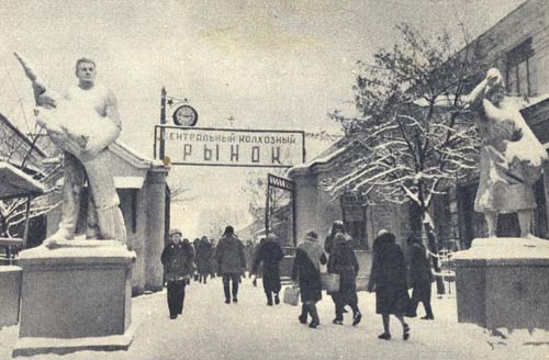 Открытый колхозный рынок — где торговля производилась из палаток, с лотков и торговых столов.