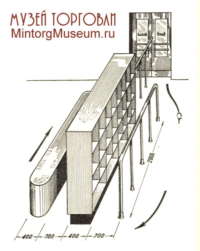 Покупатель в таких магазинах сам отбирал нужные ему товары, которые выставлялись на пристенных и островных горках, платформах-подтоварниках и другом оборудовании.