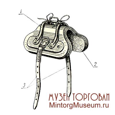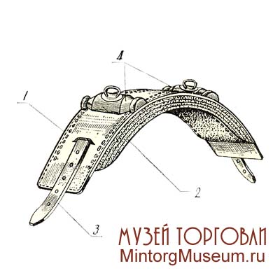 Седёлка горбатая к сельскохозяйственной упряжи: 1 — арчак; 2 — потник; 3 — горты подпружные