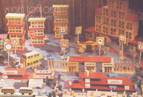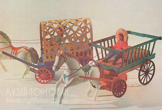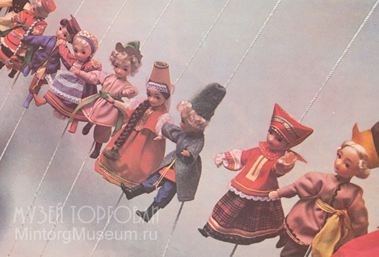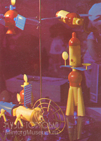 Организация и техника торговли игрушками в СССР в шестидесятых. Оптовая торговля игрушками осуществлялась Главкультторгом Министерства торговли СССР и Главкоопкультторгом Центросоюза. В Москве и Ленинграде Главкультторгом были организованы специализированные оптовые базы по торговле игрушками. Остальные базы Главкультторга — республиканские, межобластные и областные — являлись универсальными базами культтоваров. В ряде областей функции оптовой торговли игрушками были переданы универсальным базам Главгалантереи и Главхозторга Министерства торговли СССР. Функции среднего оптового звена, снабжающего ведомственную розничную сеть, в госторговле несли базы ряда главных управлений рабочего снабжения СССР — Министерства угольной промышленности СССР и т. д.; базы Главунивермага в Москве и Ленинграде; базы Укрунивермага снабжали игрушками крупные универмаги на территории УССР; базы краевых и областных управлений торговли снабжали игрушками торги и их магазины в пределах своего края, области. Средним оптовым звеном по торговле игрушками в потребительской кооперации являлись базы республиканских союзов, потребительских обществ и мсжрайбазы облрайпотребсоюзов. Розничная торговля игрушками производилась, как правило, в неспециализированных магазинах. В городах основными пунктами розничной торговли игрушками являлись отделы и секции игрушек в магазинах культтоваров горторгов и потребкооперации, в универсальных магазинах, в магазинах типа «Детский мир»; на территории УССР — в магазинах Укркультторга, в универсальной торговой сети орсов промышленных министерств и т. д. Эту магазинную сеть дополняли палатки и киоски на рынках, на вокзалах и т. д., являвшиеся обычно филиалами магазинов.