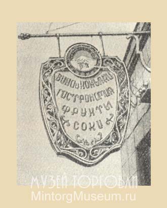 Вывески в торговых предприятиях имели назначение знакомить население с типом магазина и его товарным профилем. Каждое торговое предприятие (магазин, палатка, ларек и т. п.) должно было иметь вывеску, которую располагали на фасаде здания, где находится предприятие.