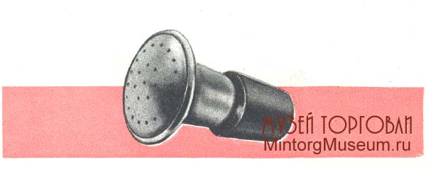 Пробка-опрыскиватель, полая внутри, имела душевую сетку и резиновый конусный наконечник-трубку.