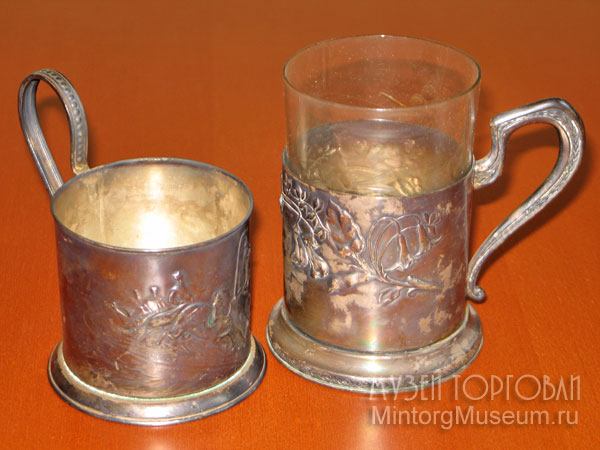 Подстаканники мельхиоровые и нейзильберовые - посеребрённые с оксидированием, с выпуклым тиснёным рисунком;