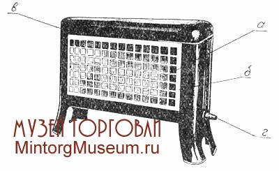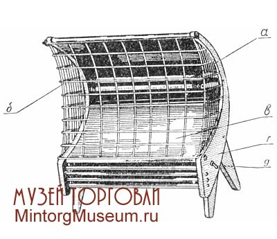 Электрический камин закрытого типа: а — нагревательный элемент; б — предохранительная сетка; в — корпус; г — выключатель