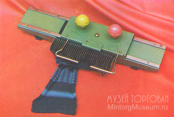 Вязальная машина "Золушка" - позволяла девочке связать для куклы кофточку, платье и шапочку, а для себя - шарфик, носки, руковички и многое другое. Машина вязала настоящей чулочной вязкой из обычной пряжи: при этом можно было набирать и снимать петли, изменять цвета, получая изделия с различными узорами.