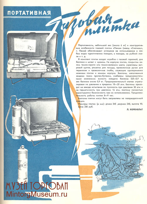 Портативность, небольшой вес (около 6 кг) и конструктивные особенности газовой плитки «Пенза» (завод «Счетмаш», г. Пенза) обеспечивали успешное её использование в любых видах туристических поездок, в походах, на рыбной ловле и т. д.