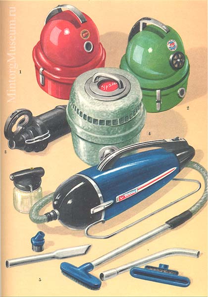 Пылесосы: 1 - Вихрь; 2 - Буран; 3 - Урал ПР-56; 4 - Уралец; 5 - Чайка