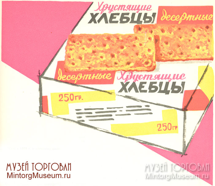 Еще в 1958 году в магазины многих городов нашей страны поступили хрустящие хлебцы, приготовленные из ржаной муки специального помола с добавлением дрожжей и соли. Хрустящие хлебцы в виде сухих, хрупких и легких ломтиков с равномерно пористой структурой содержат небольшое количество влаги (6—8%) и поэтому в течение длительного времени сохраняют все свойства свежевыпеченного продукта. Помимо высоких вкусовых качеств, эти хлебцы отличаются питательностью, в них содержатся витамины B1, В2 и РР; хлебцы рекомендуются для употребления в качестве лечебного питания при различных заболеваниях, особенно связанных с недостатком в организме витаминов. Покупатели по достоинству оценили этот продукт.