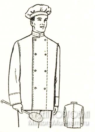Мужская (ОСТ НКЛП 7209 — 537) и женская (ОСТ НКЛП 7210— 538) поварские специальные костюмы делались двубортными на четырёх пуговицах. Спинка прямая цельная или со швом посередине, без хлястика. Рукава одношовные прямые, заканчивались внизу настроченными манжетами с закругленными углами и открытой шлицей. Воротник стоячий. Изготовлялись эти специальные костюмы из отбельных бязи или тик-ластика. Прикладом служил белый коленкор, бортовая кромка и костяные пуговицы. Поварские специальные куртки изготовлялись шести размеров — с 44-го по 56-й, двух длин. Борта, воротник, низ специального костюма и манжеты заделывались в строчку. Боковые, плечевые и локтевые швы рукавов заделывались запошивочным швом.