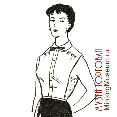 Манишки из шёлковых и х.-б. цветных и полосатых тканей изготовлялись в комплекте с воротничками из той же ткани.