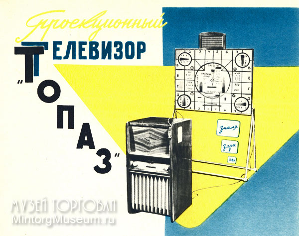 Проекционный телевизор «Топаз», разработанный на Московском заводе телевизионной аппаратуры, был предназначен для обслуживания больших аудиторий (в домах отдыха, красных уголках, клубах и т. д.).