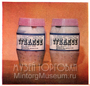 Московский завод изделий бытовой хикии выпускал целый ряд новых видов изделий. В число их входили моющая дезинфицирующая паста «Хозяйка», синтетическое моющее средство «Друг» и препарат для удаления застарелой мастики с пола.