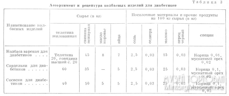 Ассортимент и рецептура колбасных изделий для диабетиков