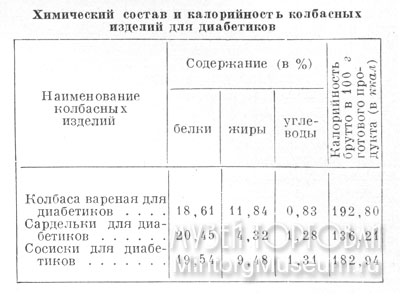 Химический состав и калорийность колбасных изделий для диабетиков