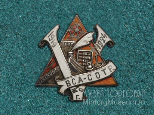 ВСАСОТР - Всероссийский Союз Административно-Советских, Общественных и Торговых Работников. 1919-1924 годы История преобразований и переименований союза вкратце такова: - май 1919 - Всероссийский профессиональный союз работников советских, общественных и торговых учреждений и организаций - июль 1920 - Всероссийский профессиональный союз работников советских, общественных и торговых учреждений и предприятий - 1923 - ВСАСОТР - декабрь 1924 - Всесоюзный профессиональный союз советских и торговых служащих (ССТС) - февраль 1931 - ССТС разделён на несколько профсоюзов (началась борьба Сталина с профсоюзным движением)
