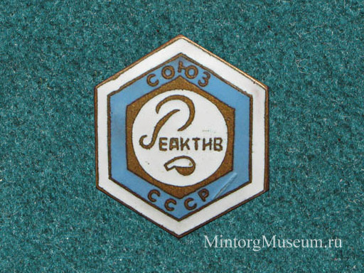 Всесоюзное объединение "Союзреактив" - один из главков Минхимпрома СССР, занимавшийся производством и сбытом малотоннажной химии (химреактивов и т.п.) и лабораторного оборудования. С конца 40-х гг. имел развитую сеть магазинов по всей стране. |