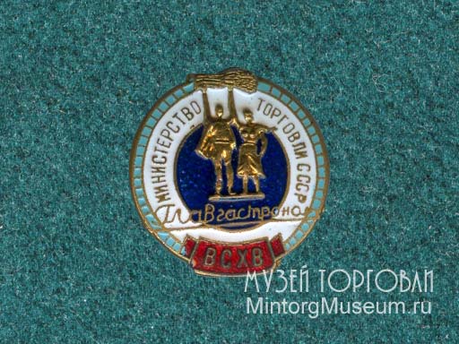 Главгастроном ВСХВ Министерство торговли СССР Значок выполнен в соответствии общему оформлению значков Гастрономии: Главгастроном Минторга СССР, Гастроном Мингорисполкома, Гастроном Управления торговли продтоварами и т.д. Также к ВСХВ относится значок Главнарпит |