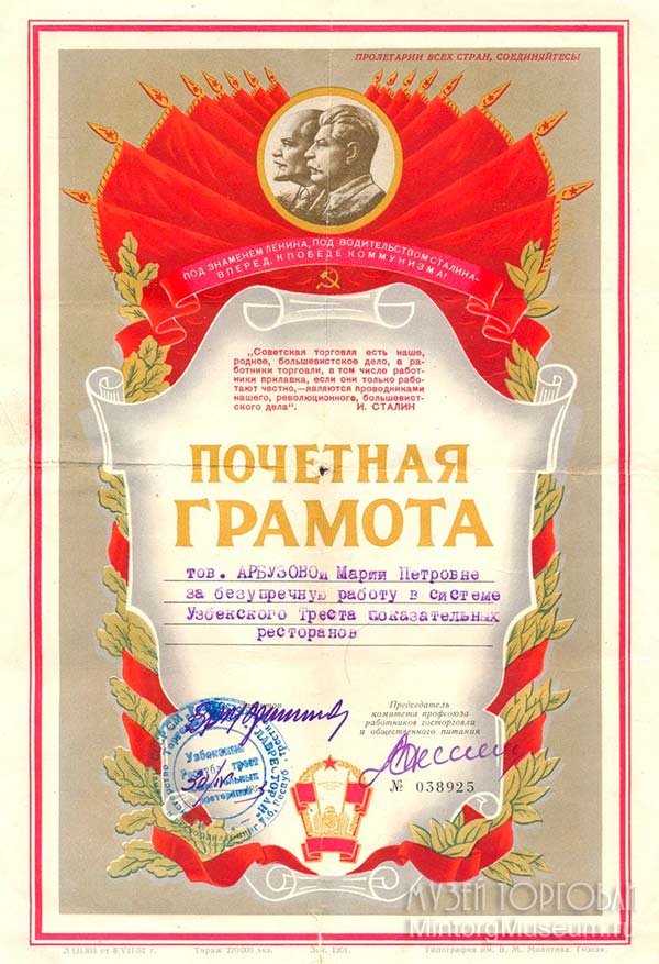 Почётная грамота 1953 год